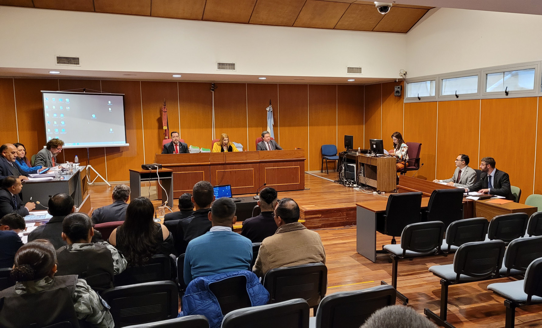 El juicio se desarrolla con tribunal colegiado integrado por los jueces de la Sala VI, Mónica Mukdsi (presidenta), José Luis Riera y Guillermo Pereyra (vocales).